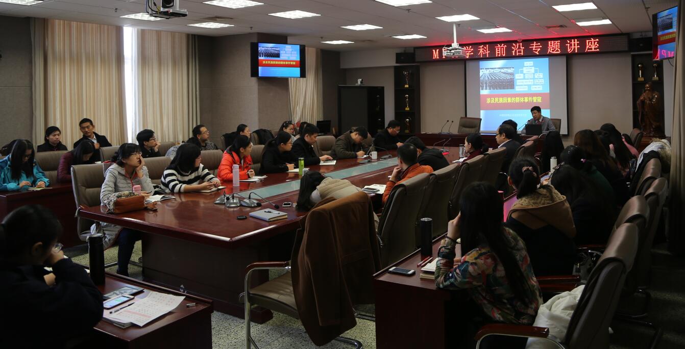 严庆教授以具体事例和详细数据为切入点,从时间、地域、主体、方式等方面详细系统地阐述了现阶段我国涉及民族因素的群体事件的基本概况,并从族性动员理论、群体行为理论、挫折进攻理论等角度进行了分析,指出了目前在应对处理群体事件中存在的主要问题和不足,提出了新时期做好我国民族工作、积极应对涉及民族因素的群体事件的对策和建议。在现场互动环节,严教授分别回答了2016MPA学员提出的关于基层信访矛盾以及少数民族宗教信仰自由等方面的问题。整场报告融知识性、专业性与实践性于一体,现场反应强烈,赢得了师生们的一致好评。