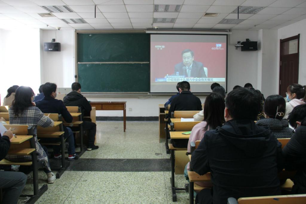 为学习贯彻六中全会精神,进一步深化党史学习教育,1112日上午,赌场 党委于JC614组织全体党员观看党的十九届六中全会新闻发布会。学院党委书记卢瑞霞,党委副书记张忠凯,副院长李增元等党委成员、教工党员、学生党员参加观看。