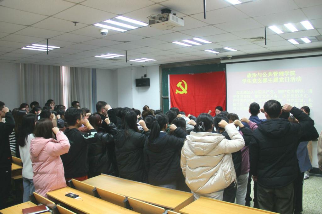 学生党支部开展纪念“一二·九”运动暨“新党员入党宣誓,老党员重温入党誓词”主题党日活动,学生党支部全体党员参与活动。