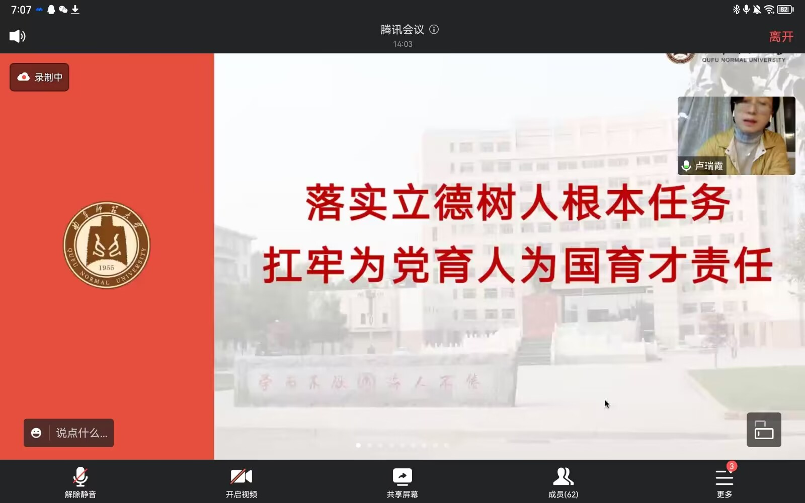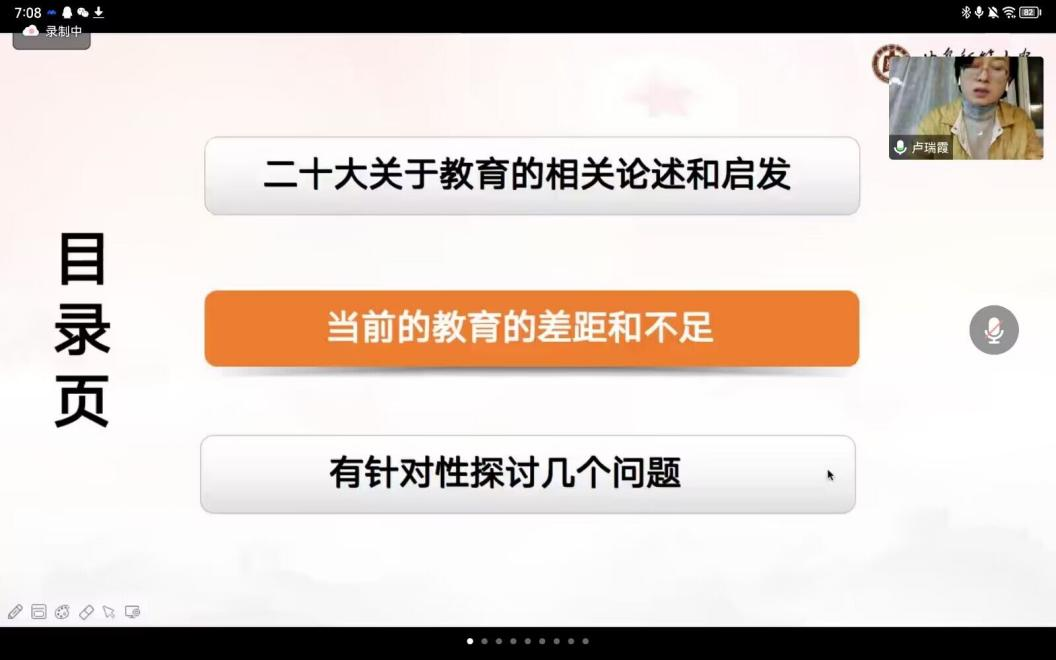 党委书记卢瑞霞聚焦党的二十大关于教育的部署,主持召开线上专题会议,全体学生党员积极与会。