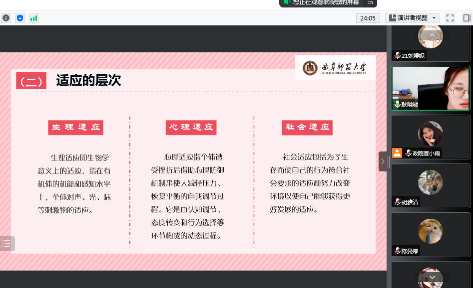 对202级新生进行心理健康教育,2020级辅导员耿晓敏主讲,2022级新生积极与会。
