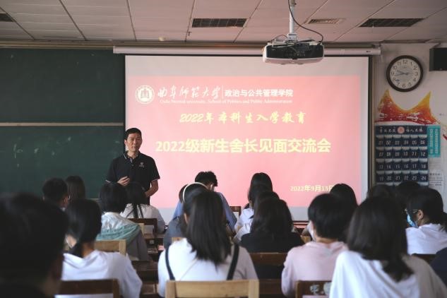 2022级辅导员王元如发表主持并讲话,2022级新生舍长积极与会。