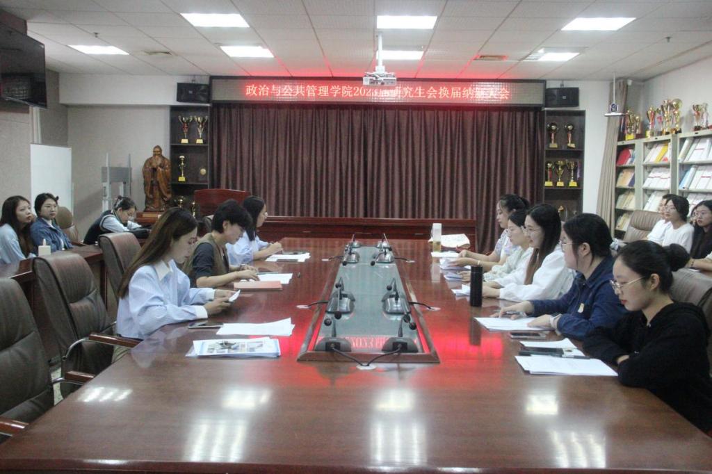 JC909会议室举行。学院党委书记卢瑞霞、研究生辅导员徐莉、2022届研究生会主席团出席此次会议,大会由研究生会主席刘环主持。
