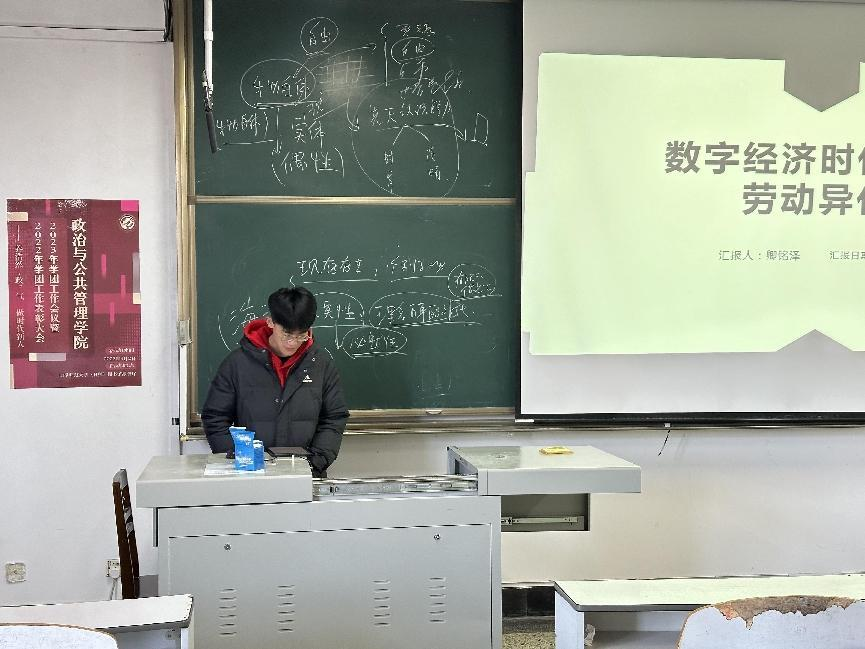 2023级卿铭泽同学分享的是克里斯蒂安·福克斯所著的《数字劳动与卡尔马克思》,他讲到书中福克斯认为,计算机、互联网和“社交媒体”(例如Facebook, Google, YouTube 和Twitter)时代,人类的劳动正在发生着变化,这种变化表现在全球价值链生产方式下各种不同形式的数字劳动国际分工(international division of digital labour . 简称为:IDDL),但是,所有这些劳动方式有一个共同特征,即人类的劳动力被剥削。最后,他就数字经济时代下的剥削提出问题并进行了阐述。