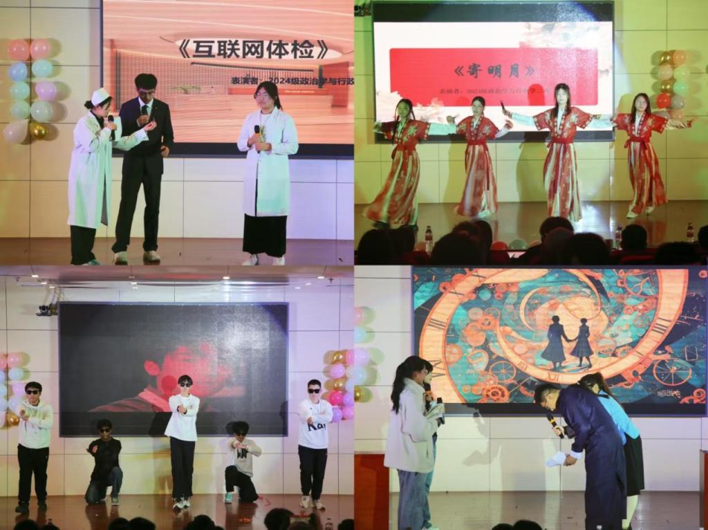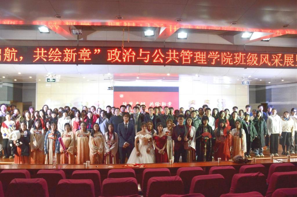 于12月21日在图书馆报告厅举办“政梦起航,共绘新章”班级风采展暨元旦晚会。党委副书记张忠凯,团委书记马腾,辅导员王元如,班主任张蕴睿、冯相磊、杨柳、相福星老师莅临现场,其他各院主席也应邀出席,2023级和2024级全体学生积极参与。