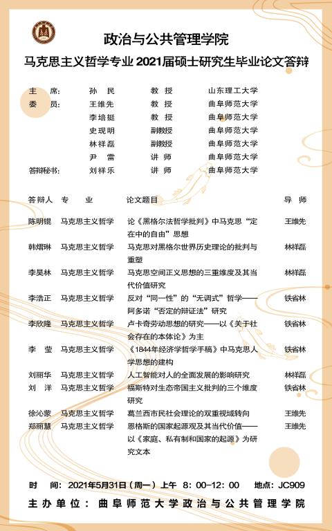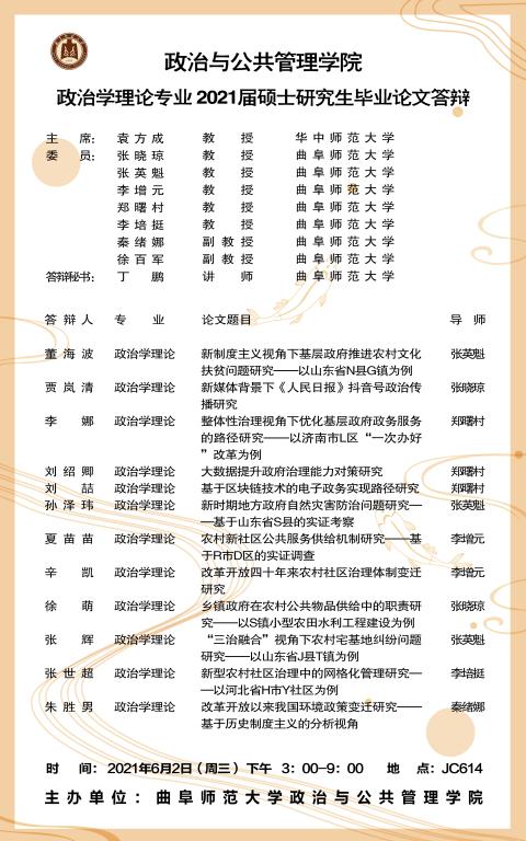 赌场 2021届学术型硕士研究生学位论文答辩公告