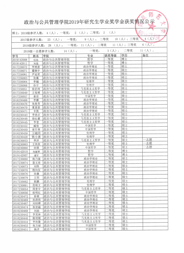 根据学校和赌场 有关工作制度规定,严格按照《关于印发研究生国家奖学金、助学金管理办法与学业奖学金管理办法的通知》(曲师大校字[2014]155号)文件的要求,赌场 2019年研究生学业奖学金评选工作按照发布通知、个人申报、评委评议、学院研究等环节进行,现将获奖情况名单公布如下: