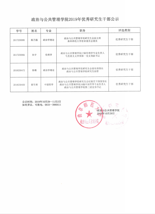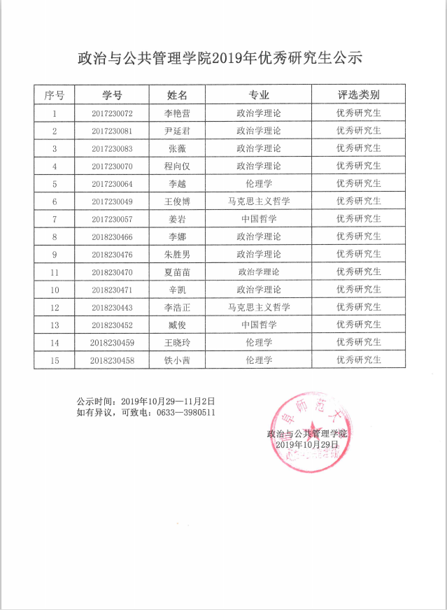 根据学校和赌场 有关工作制度规定,严格按照《赌场 研究生奖励办法》(曲师大校字<2019>6号文)的要求,2019年优秀研究生、优秀研究生干部评选工作按照发布通知、个人报名、评委评议、学院研究等环节进行,现将拟定名单公布如下: