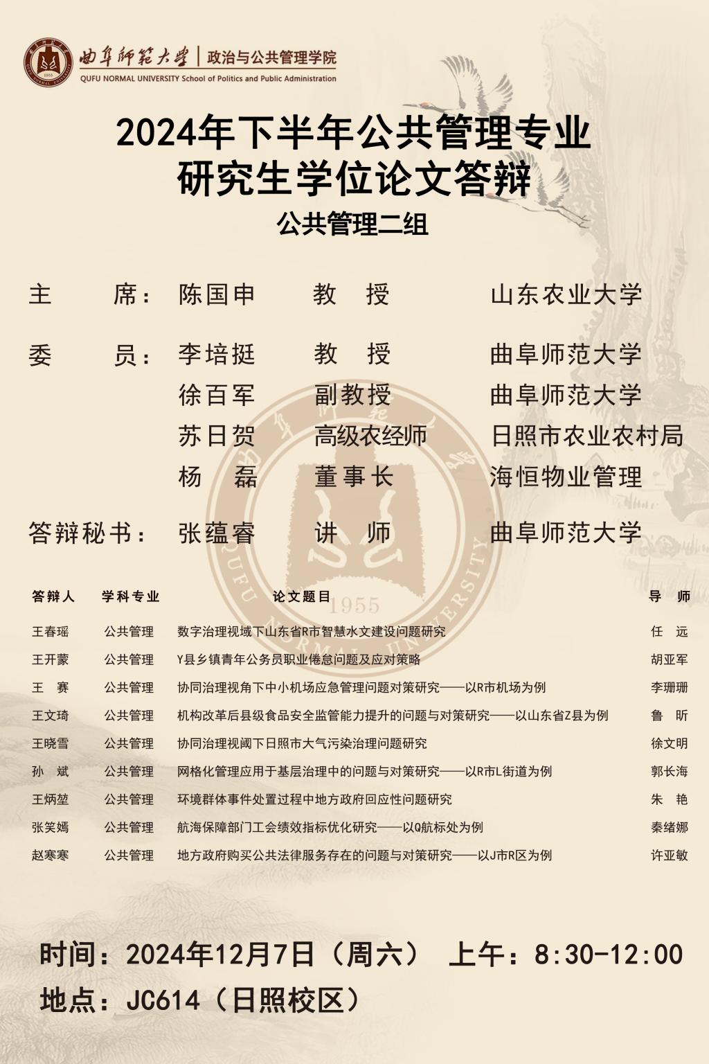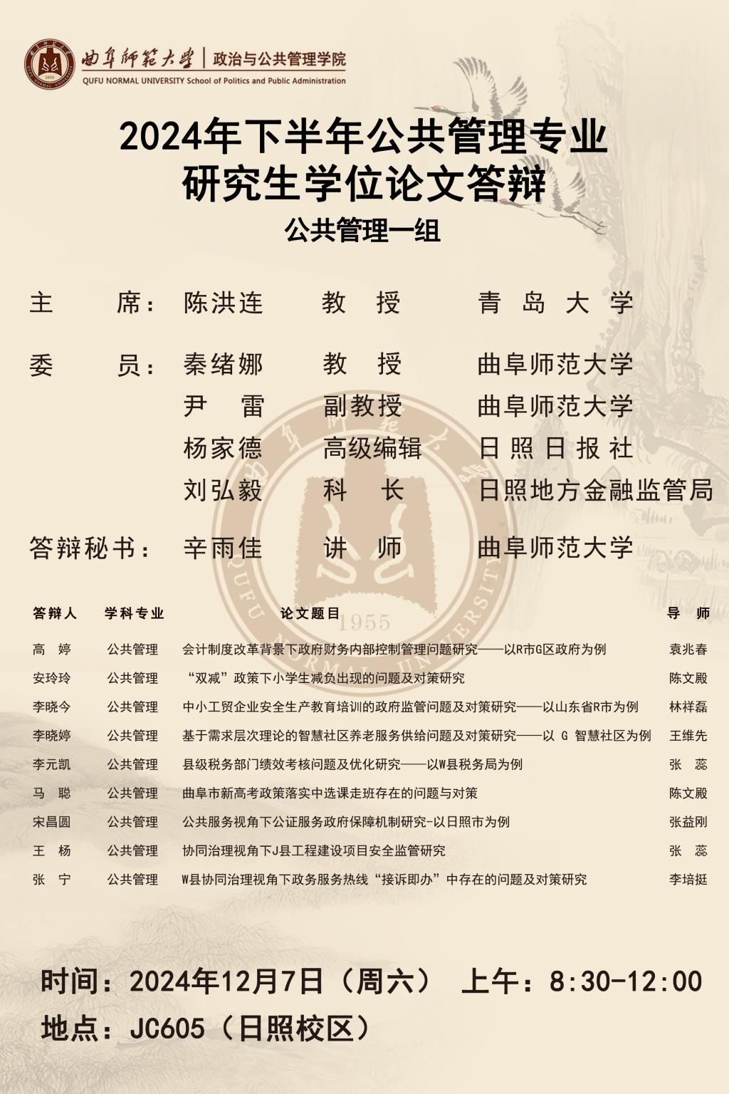 赌场 2024下半年公共管理专业研究生学位论文答辩公告