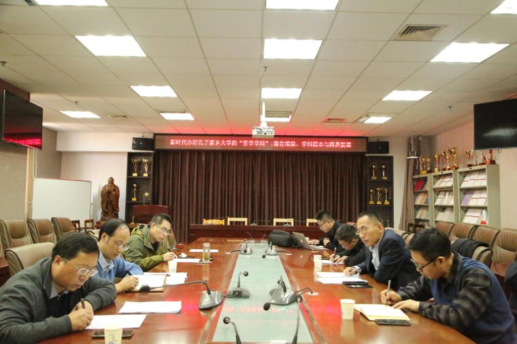 与校儒学研究中心、社科理论重点基地的合作,实现举全校之力支持和发展哲学学科;二是提出要注重与校外著名院校进行科研探讨和交流学习,实现进一步深度合作。