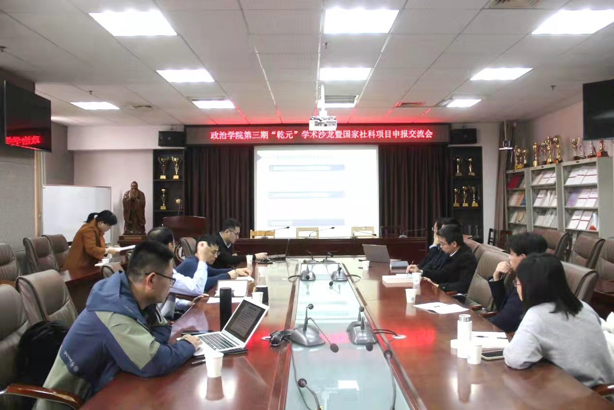 在JC909会议室召开青年教师第三期“乾元”学术沙龙暨“国家社科项目申报交流会”,学院中青年科研骨干教师积极参会,会议由副院长李增元主持。
