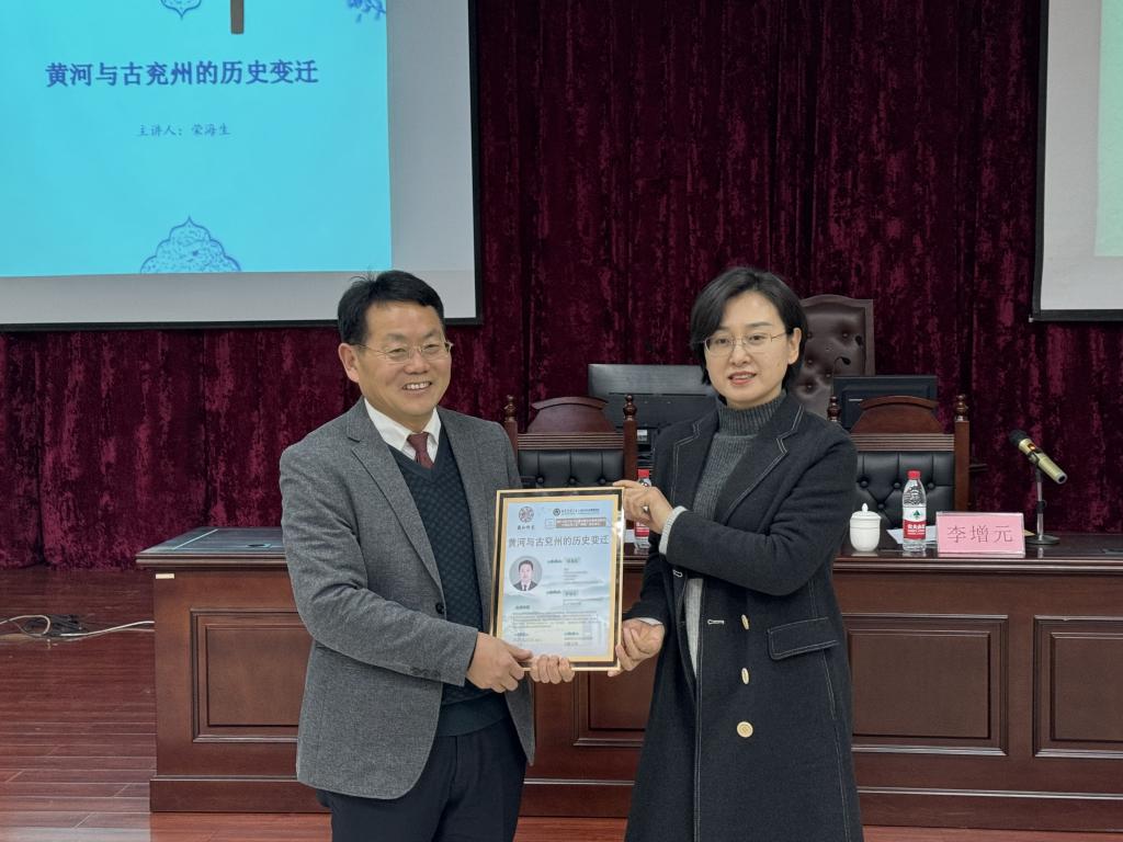 黄河是中华民族的母亲河,黄河文化是中华文明的重要组成部分。荣海生教授对历史追本溯源,从黄河华民族的母亲河”、“兖州:厚重的文化符号”、“频繁迁徙的兖州”、“讲好黄河故事”四部分进行展开,详细地介绍了黄河文化的发展与传承,并着重解读了古九州之一——兖州的变迁史。他指出,黄河孕育了古老而伟大的中华文明,根植于黄河流域的黄河文化是中华文明中最具代表性、最具影响力的主体文化。保护传承和弘扬黄河文化,讲好“黄河故事”,推进黄河文化的研究,对于国家和民族的繁荣发展都具有重要的意义。