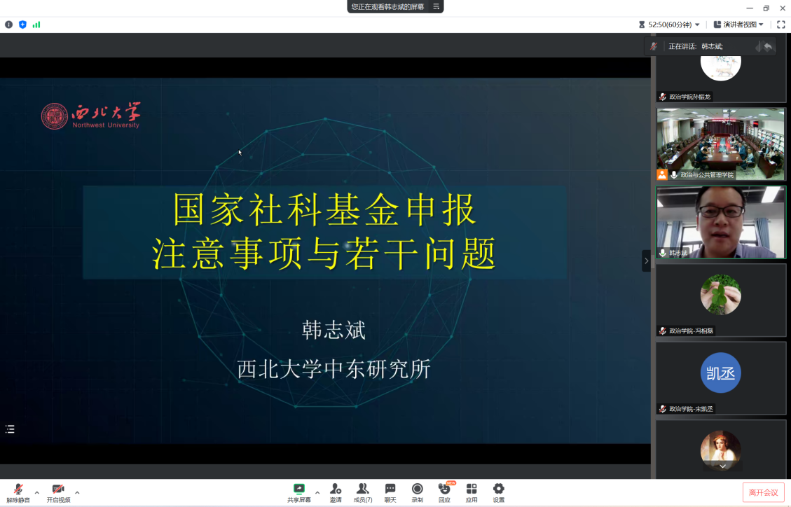 于JC909会议室成功举办“国家社科基金项目申报指导交流会”,会议邀请西北大学中东研究所所长、博士研究生导师韩志斌教授就国家社科基金项目申报进行“线上”指导交流。会议由赌场