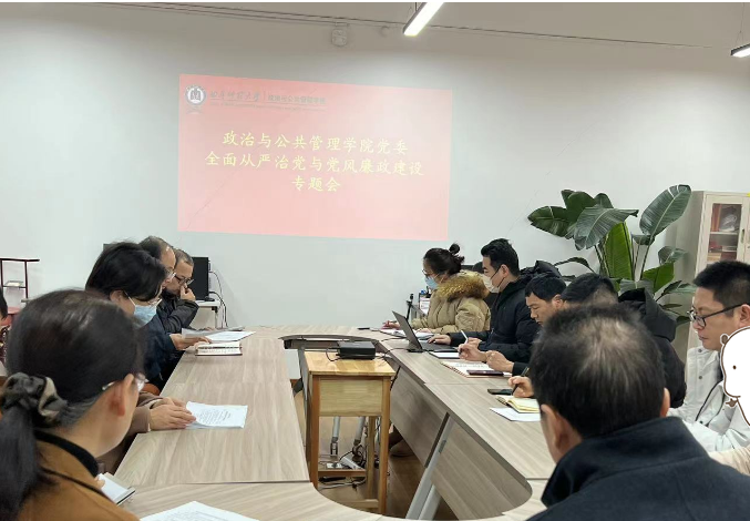 党委于D104召开2023年下半年全面从严治党、党风廉政建设专题会议。会议由学院党委书记卢瑞霞主持,学院党委领导班子成员、各支部书记、系主任、学科办主任参加本次会议。