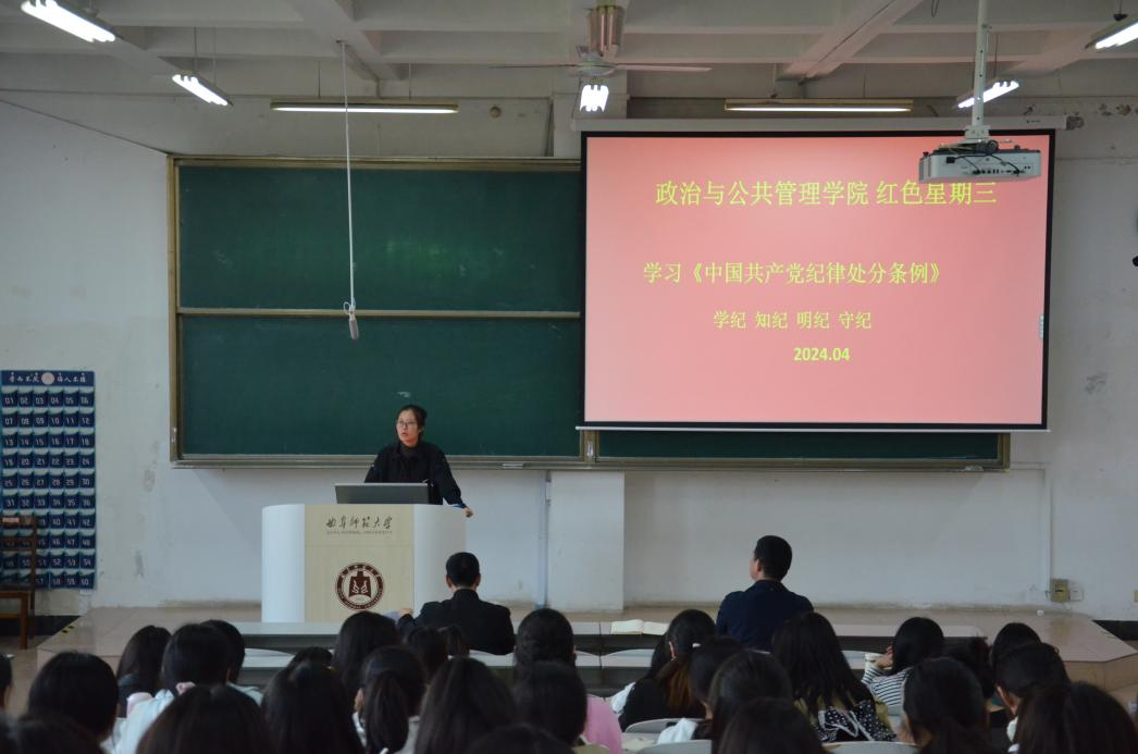 王元如老师作了专题辅导,系统解读了《中国共产党纪律处分条例》。随后,党员代表吴泽文领学《条例》总则部分。