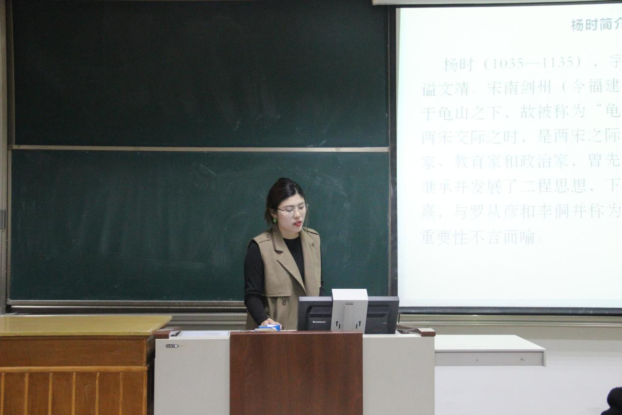 首先,2020级聂仁玺同学分享林海权点校版《杨时集》。本书是北宋理学家杨时的作品全集,其中王道思想的内外在理路值得详细考证和叙述。杨时王道思想主要是以“仁、诚、心、德”四方面为主线进行内在理路的贯通;而外在理路是从“执中尚义”“安邦治世”“治国平天下”等方面来详实论证。