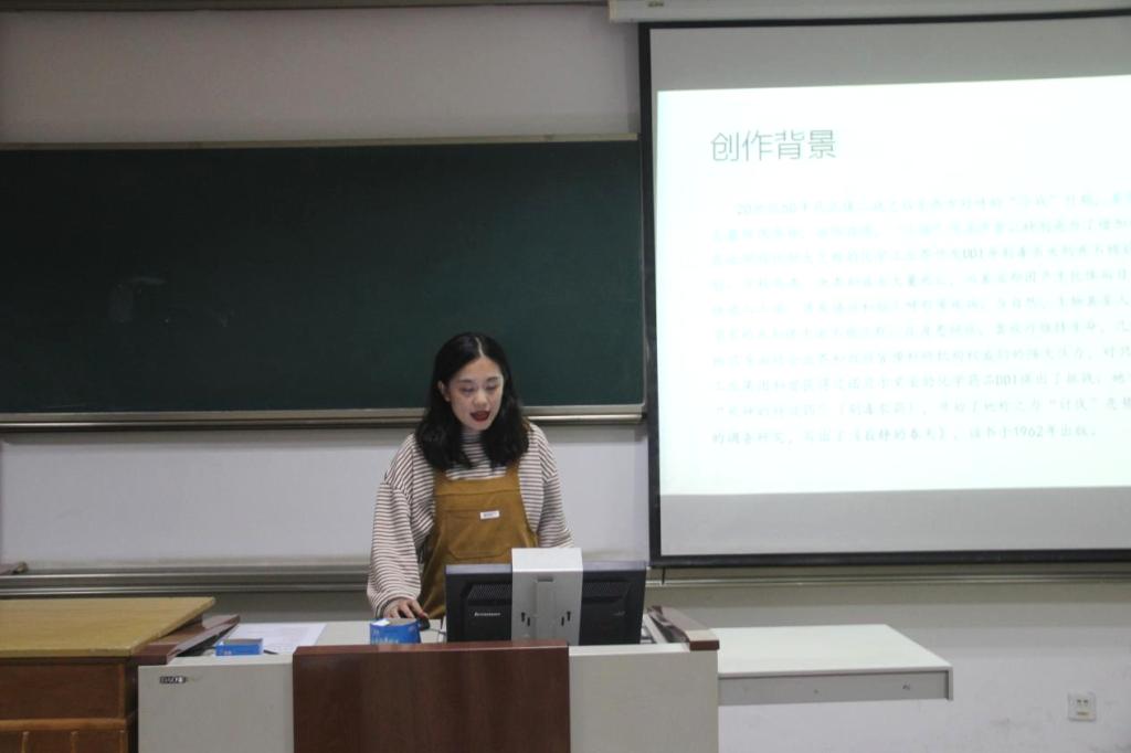 随后,2021级王玥涵同学分享蕾切尔·卡迅的《寂静的春天》。《寂静的春天》是美国科普作家蕾切尔·卡逊创作的科普读物,讲述了农药对人类环境的危害。她讲述的“再也没有鸟儿歌唱”一部分,因为人类喷洒DDT后榆树和鸟类迅速的遭受损害,引发深思和警醒,提醒人们科学认识生态价值,正确处理人与自然的关系,负起生态伦理责任,转变以人类为中心的价值观和生活方式,认同自然万物的价值,从而实现生态自我,开创生态文明新模式。