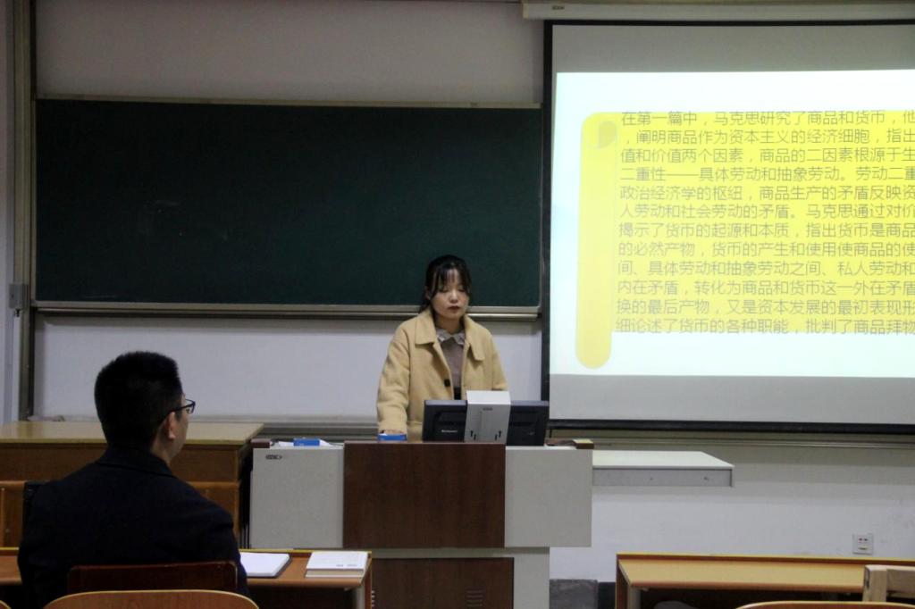 2021级陈晨同学向大家分享的是《资本论》一书。她介绍到马克思在这部著作中运用辩证唯物主义和历史唯物主义的世界观和方法论揭示了资本主义社会的经济运动规律和资本主义产生、发展和灭亡的历史规律。马克思在《资本论》第一卷中对资本主义做出的许多论述是紧扣大机器生产工具展开的,通过分析和结合实际论述,马克思的劳动价值论与马克思的剩余价值理论仍然保持强大生命力。