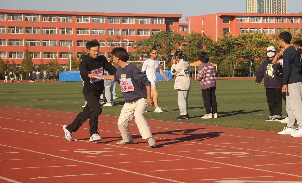 袅袅秋风,草木摇落霜。各学院代表队依次入场,全体同学庄严地唱响国歌,注视着国旗升起。升国旗仪式后,裁派员代表、运动员代表先后进行宣誓,表示将会恪守体育职业道德,遵守运动竞赛规则。动感的啦啦操舞蹈点燃了全场的热情,拉开比赛序幕。本次运动会共设置学生男子组、学生女子组、趣味项目三个组别,比赛内容包括100米、200米、400米、800米、1500米、4×100米接力、4×400米接力、跳高、跳远、铅球、踢毽子、跳绳、立定跳远等项目,运动员们本着“友谊第一,比赛第二”的赛场原则,在田径场上挥洒汗水,在观众席的声声呐喊助威中,超越自身的极限,用信念谱写青春华章。田径比赛中,运动员飞跃的身姿轻如燕;趣味比赛里,参赛人员被欢乐渲染;在主席台欢腾的歌声里一篇篇加油稿被传递朗诵,为运动健儿们带去鼓励与加油。最后,比赛在女子4×400的激烈角逐中落下帷幕。
