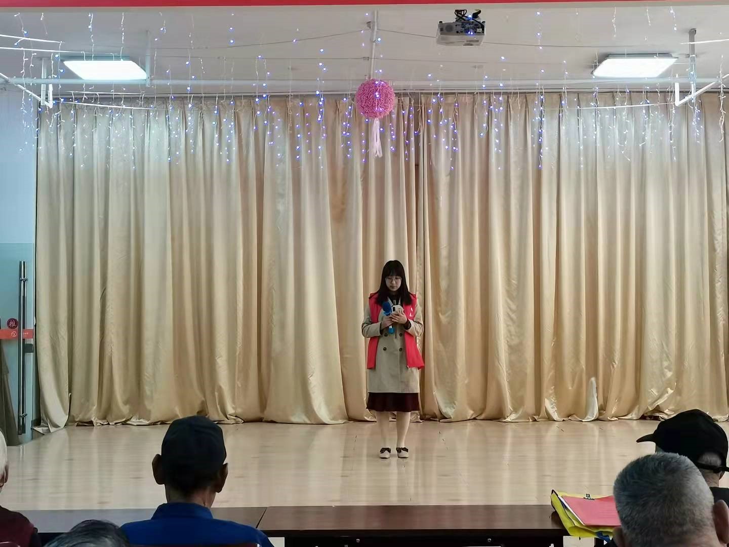 此次联欢会在《好运来》的欢快歌声中拉开帷幕,老人们欢聚一堂,共展“夕阳”风采。