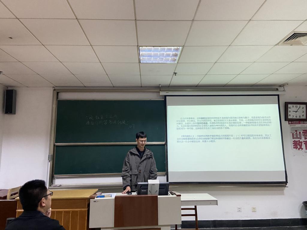 随后,2020级沈琦同学为大家分享了《神圣家族》一书。马克思和恩格斯突破了唯心主义思辨哲学的束缚,将研究中心转向现实和群众,这对于马克思主义的形成,特别是唯物史观的建立具有重要理论意义。