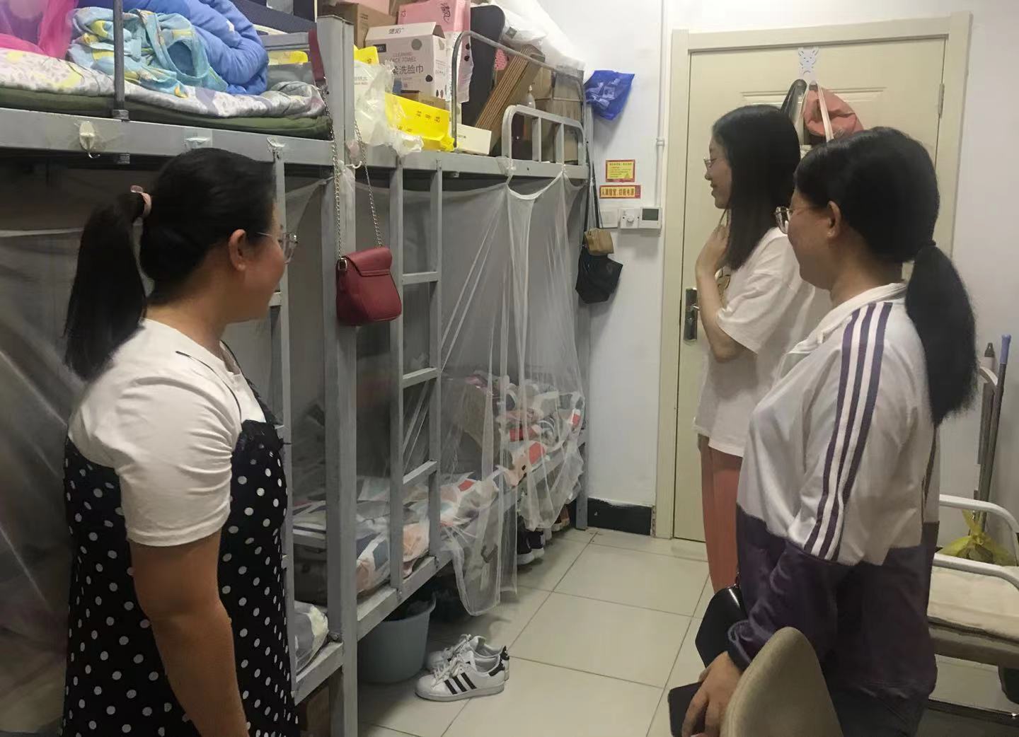 在走访排查宿舍安全的过程中,辅导员徐莉与同学们亲切交谈,了解大家学习、生活近况,鼓励研一和研二的同学聚焦学业,刻苦学习的同时要加强体育锻炼;关心即将毕业同学的就业动向,外出求职务必严格执行请假制度,注意外出安全。特别叮嘱同学们,毕业季来临,安全意识时刻不能放松,专业负责人、舍长、党员同学应做好表率,时刻关注同学们的动态,坚决杜绝晚归、醉酒等现象的发生,近期各学院辅导员到四季花园值班,同学们要自觉遵守学校管理及宿舍管理制度,师生共同维护校园安全秩序。
