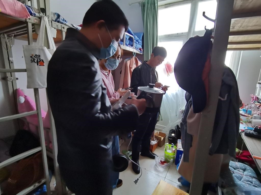 各年级辅导员、院学生会宿管部成员以及各年级班团,不定期对学生宿舍安全情况进行实地了解,做好安全隐患的排查工作,对乱拉电线、使用违章电器等违规违纪行为做出严肃处理。针对排查中发现的安全隐患问题,及时督促学生整改,力求消除宿舍安全隐患。