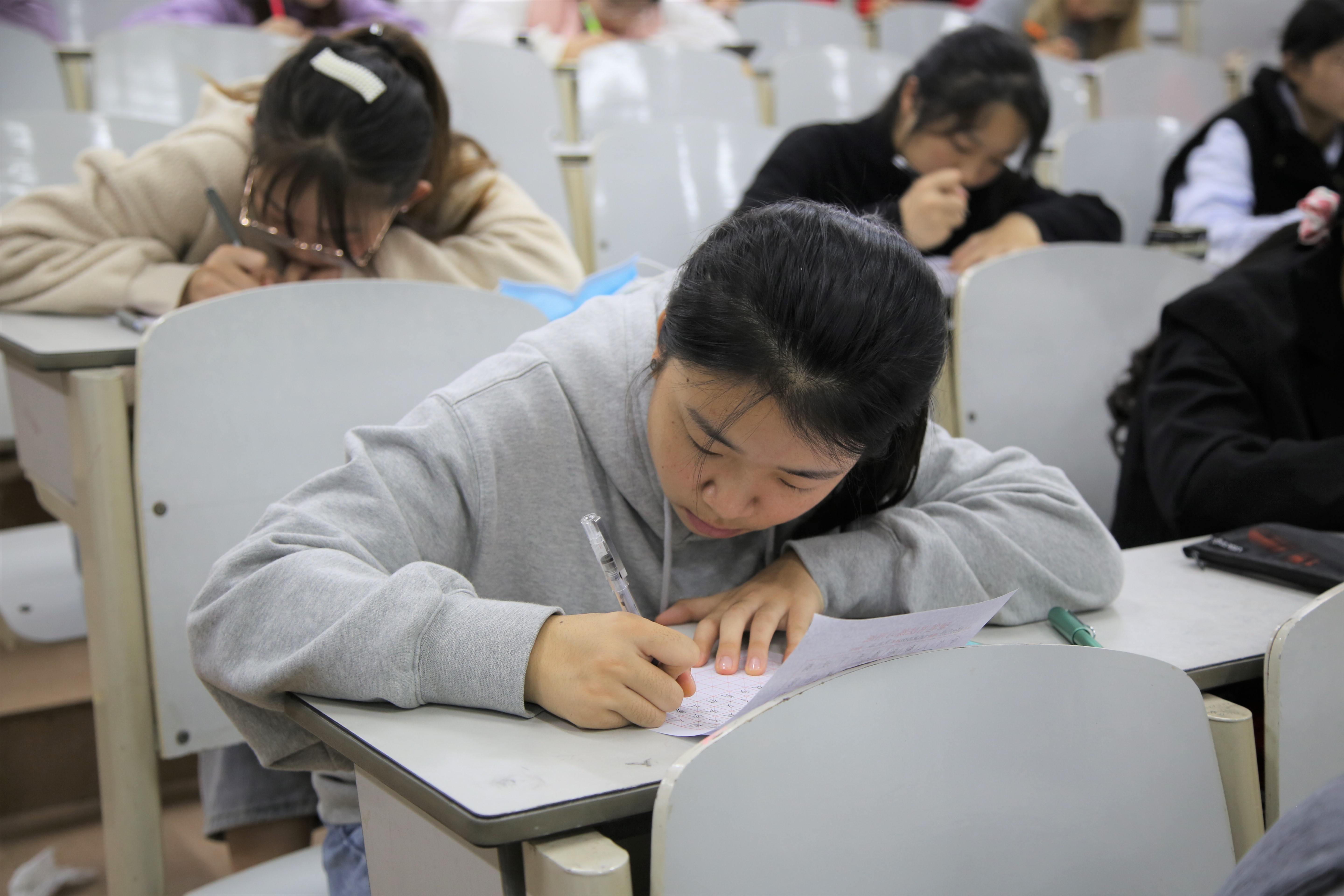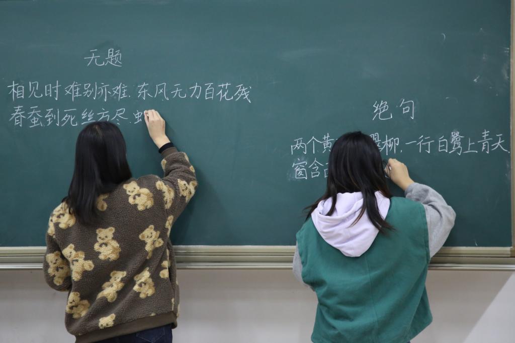 活动伊始,团委学生会学习部部长祝令硕首先介绍了本次比赛的基本规则和注意事项,大赛分为钢笔字、毛笔字、粉笔字三个组别,毛笔字和钢笔字组别的比赛内容以对联、名篇名句等为主,粉笔字组别需在黑板上书写一首七言古诗。随后,王元如讲话,指出书法的重要性及其独特魅力。比赛在王元如讲话结束后正式拉开帷幕,选手们迅速进入状态。比赛现场,参赛选手认真书写,聚精会神,专心致志地展现自己的书法才能。毛笔字组别的选手在宣纸上挥毫泼墨,以行、楷等各种书体书写名言警句、诗词歌赋等,整齐的毛笔字跃然纸上;钢笔字组别的选手全身心投入于自己的作品书写,用横竖撇捺完美地诠释了钢笔字的魅力和独特风格;粉笔字组别的参赛选手全神贯注,有的字体遒劲有力,有的潇洒自如,每一个笔画都在尽力展现自己的最高水平。同学们铿锵有力的书写,隽秀俊美的字迹都展现出赌场 学子深厚的书法功底。最后,评委团对参赛选手的作品精心评选,并进行打分。