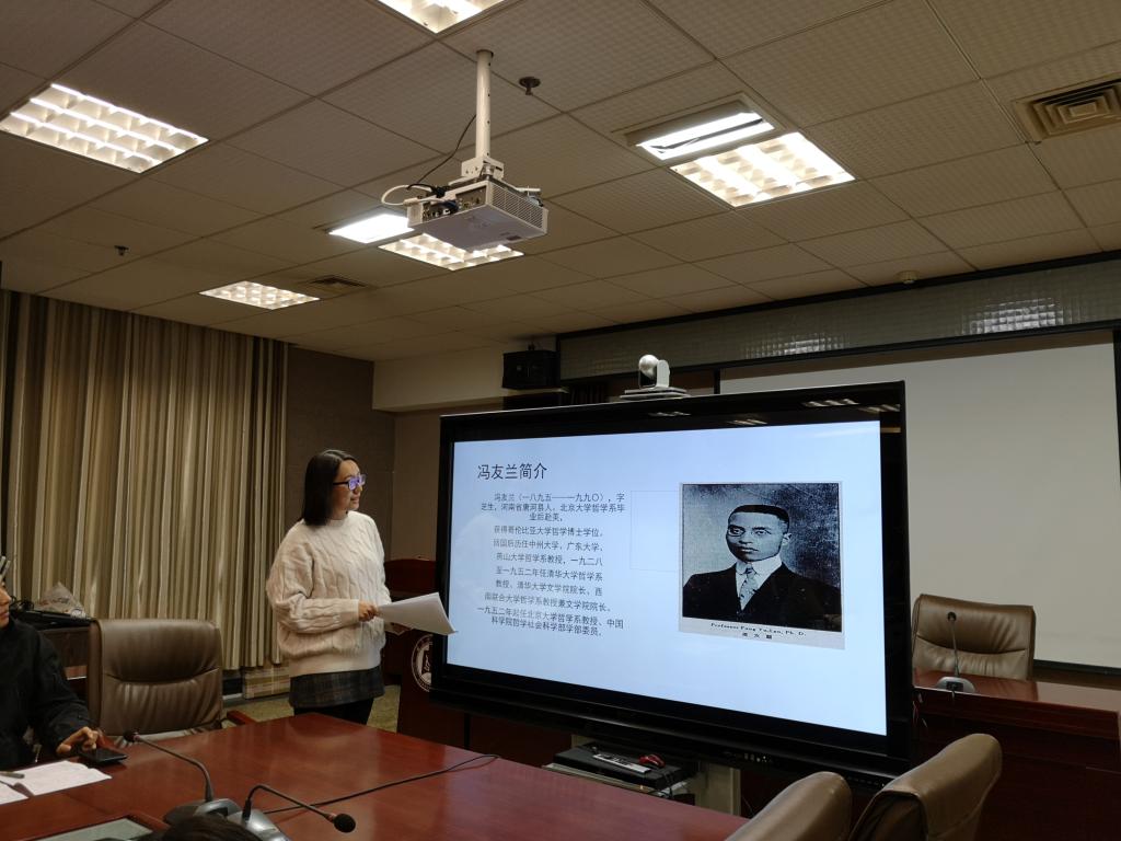 本期政研论坛读书会围绕哲学专业相关书目及人物展开讨论。首先中国哲学专业的杨洋同学探讨了冯友兰先生对中西问题方向态度,以及冯友兰先生喻以乡下人和城里人提出空间文化论,指出中国文化复兴的希望;马克思主义哲学专业王俊博同学针对冯友兰先生提出的“中学为体,西学为用”与洋务派“中学为体,西学为用”的异同点与杨洋同学展开讨论。随后马克思主义哲学专业李浩正同学以“哲学主要问题”为主题展开阐述,并从“在、真、善、美、人”五个方面去探讨哲学是什么。伦理学专业赵蕊同学阐述了李泽厚的“情本体”,探讨内容主要是中西方的情感体,解析了李泽厚的情本体的定义、形式和理论意义及现实意义。在报告会问题讨论环节,各级研究生针对中西方“本体论”的异同,展开了激烈的讨论,气氛热烈,学术氛围浓厚。