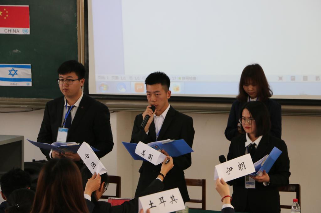 活动遵循大会规则,参赛者分饰中国、英国、以色列等11个国家的国家代表,先经讨论,确立“是否支持耶路撒冷成为以色列首都”为大会议题,然后按照正式辩论、非正式辩论、提交决议案、投票的大会流程,通过不断提出动议、上台发言、进行自由辩论阐述“自己国家”观点,争取“本国”利益最大化,展现出不同国家的气度。最终大会经过投票以9票超过绝大多数8票通过了“中国不支持耶路撒冷成为以色列首都,主张两国方案,巴以双方和谈”的提案。汤锐老师对大会和“各国”表现进行点评总结,并号召大家多关注时政、学习时政。最终,“以色列”、“约旦”两国夺得一等奖,“以色列”获得最佳国家代表奖,“中国”获得最佳立场文件奖,葛光敏、王艺颖获得最佳国家代表奖,郑渐成、胥静意、张悦获得优秀国家代表奖。第六届模拟联合国在掌声中闭幕。