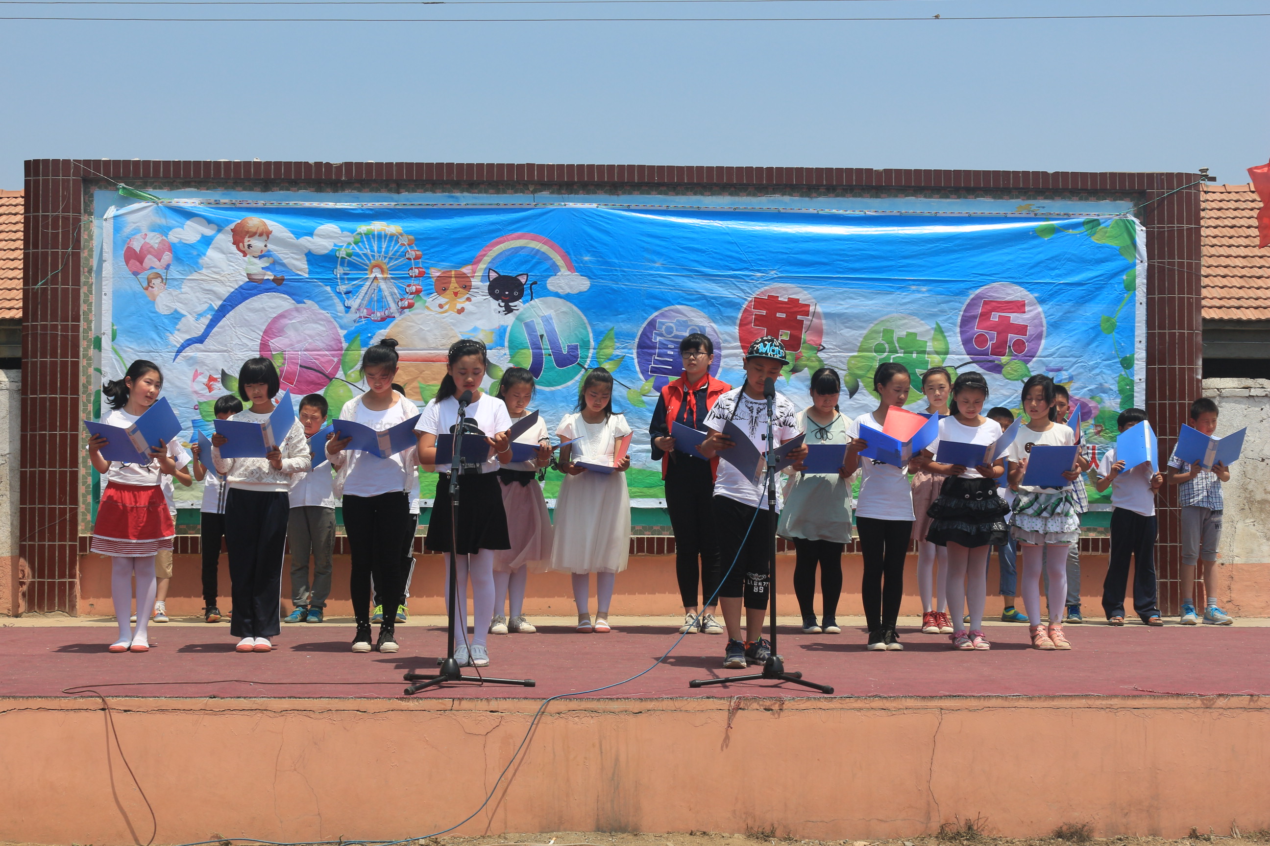 一大早,曲师义工兵分两路,分别前往东港区后河镇山河小学和南湖镇黄山小学,参加两个学校的庆“六一”大会。大会伊始,山河小学的同学们为义工们戴上鲜艳的红领巾,校领导为优秀支教义工颁奖,以此表示对爱心支教的感谢、肯定和支持。曲师义工为此次汇演做了精心准备,带领小朋友们一遍遍认真排练,最终以歌舞表演、电子琴演奏、诗朗诵等色彩纷呈的节目赢得了师生、家长和义工们的阵阵掌声。