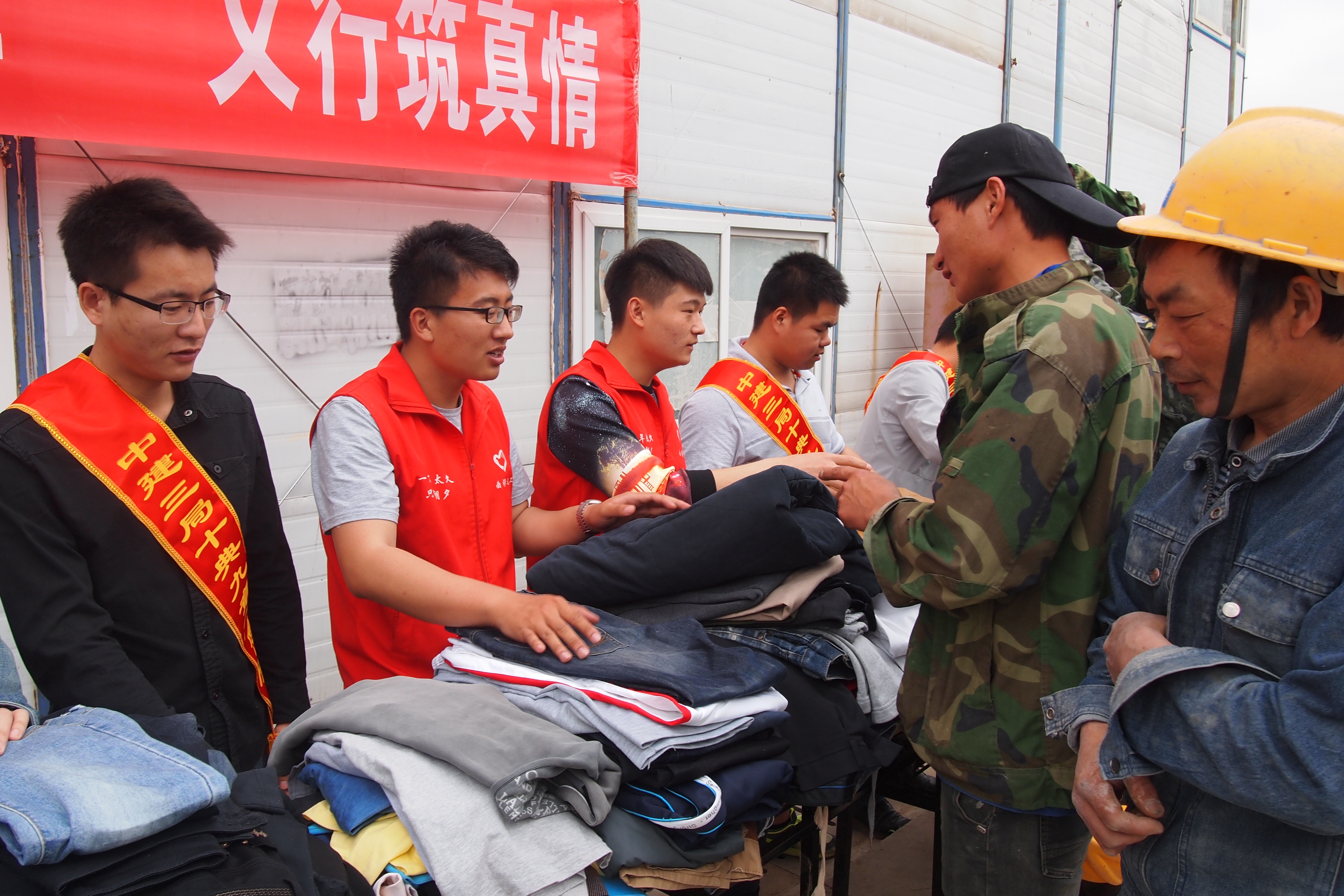 义工服务大队的义工们走入建筑工地。在了解到工地工人们的实际需要后,义工们结合自身实际情况,在宿舍园区组织了为期三天的“情系农民工,义行筑真情”旧衣物募捐活动。活动得到了同学们的大力支持。三天时间内,共募集到了千余件旧衣物。
