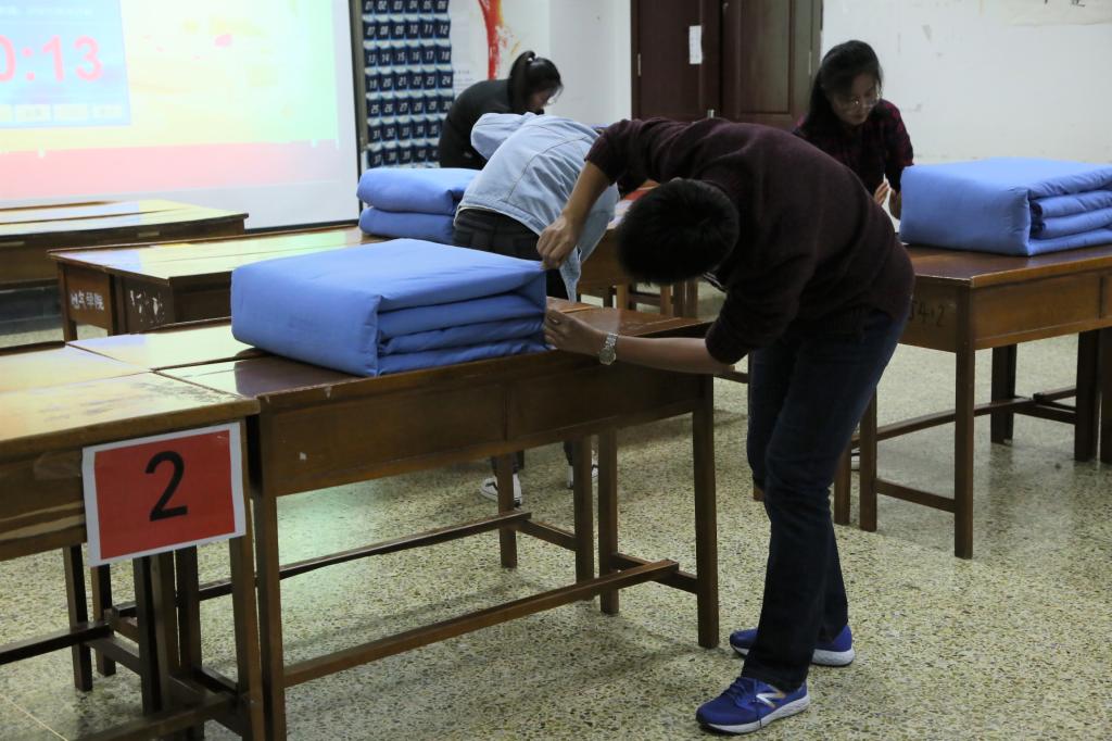 “军人之风,方正之心。”此次比赛旨在培养同学们的自我管理能力和动手实践能力,有利于同学们养成良好的生活习惯和生活方式,对于加强寝室内务管理、促进宿舍文化建设具有积极意义。