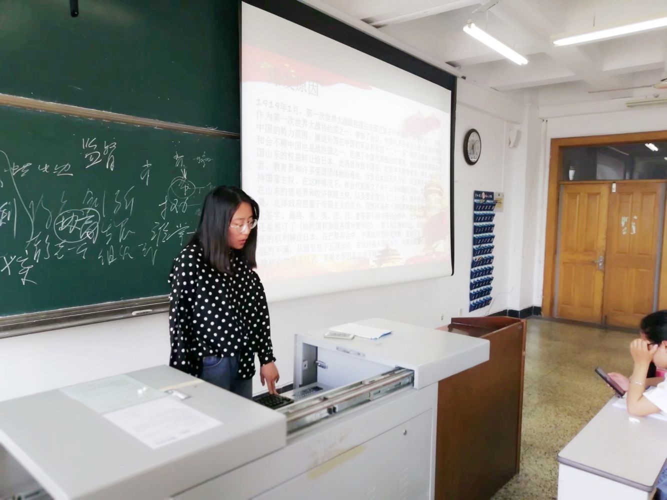 5月20日,政治学与行政学班全体同学在团支书王梦阳的带领下,共同学习“纪念五四运动一百周年”主题团课,探究新民主主义革命起源。王梦阳从五四爆发的历史背景、爆发原因、新时代学习五四精神等几个方面进行讲解。全班同学认真聆听,积极交流并通过制作明信片、撰写读后感的方式来纪念五四运动一百周年。通过系列相关活动,促使同学们重温五四精神,再扛五四大旗,进一步坚定理想信念。