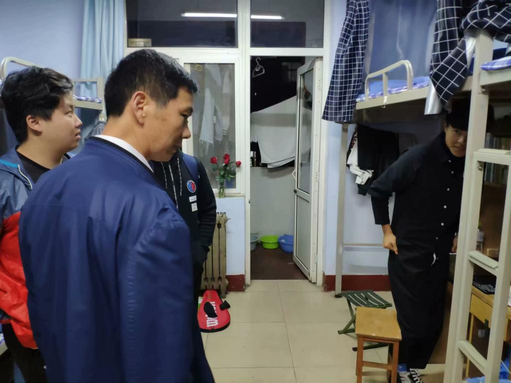 团委书记王元如携团委学生会主席团部分成员、17与18级学生代表走访学院东升与文泽两个园区的男生学生宿舍,对宿舍安全和卫生方面进行检查。