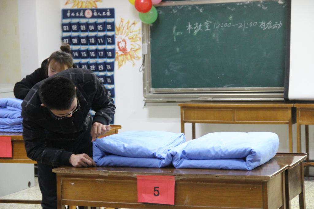 12月10日,由马克思主义学部团委学生会宿管部办的第十四届宿舍文化艺术节开幕式暨叠被子大赛于JC605举行,2017级同学踊跃参加。