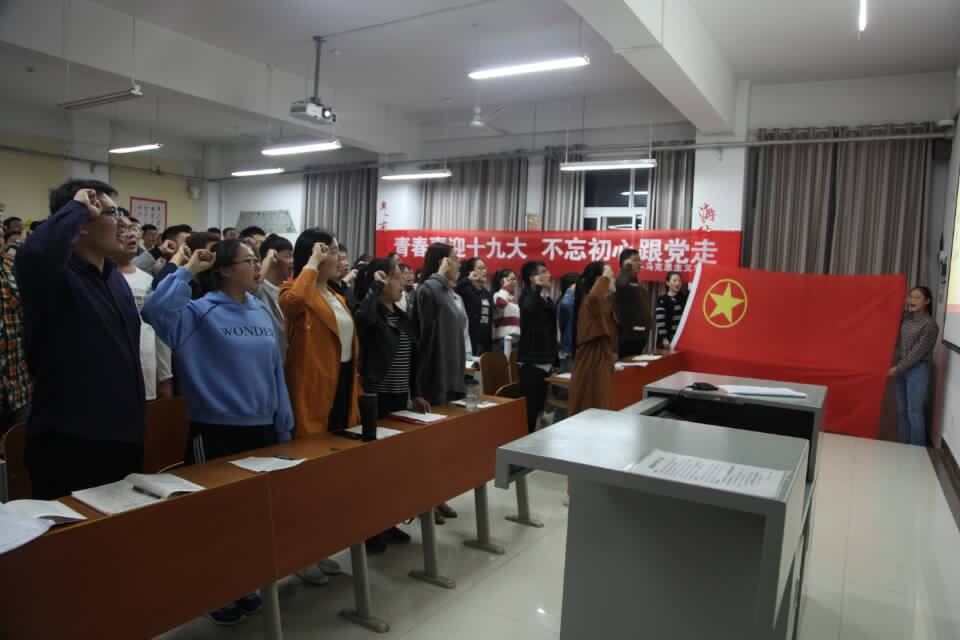 全体团员认真观看党的十九大主题纪录片《领航》,共同回顾以习近平同志为核心的党中央领航中国的五年纪实,感受党的坚定与担当;习近平系列讲话精神宣讲团成员王思贤作了以“子子孙孙无穷匮矣”为题的宣讲,讲述一代又一代共产党员的强大“信仰力”,号召全体团员为实现“中国梦”添砖加瓦;活动尾声,全体团员重温入团誓词,牢记使命担当。