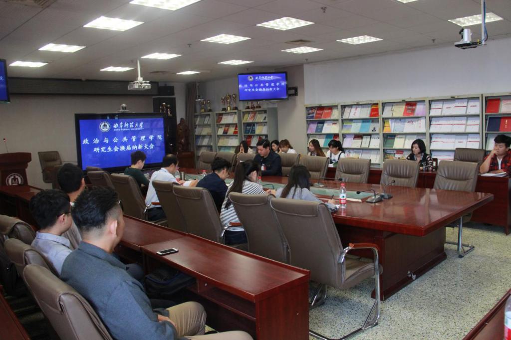 于JC909会议室举行2018级研究生会换届纳新大会。学院院长助理李增元老师,研究生辅导员张楠老师,以及20多名参加竞选的优秀研究生参加了此次活动,大会由张楠老师主持。
