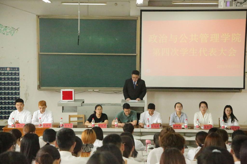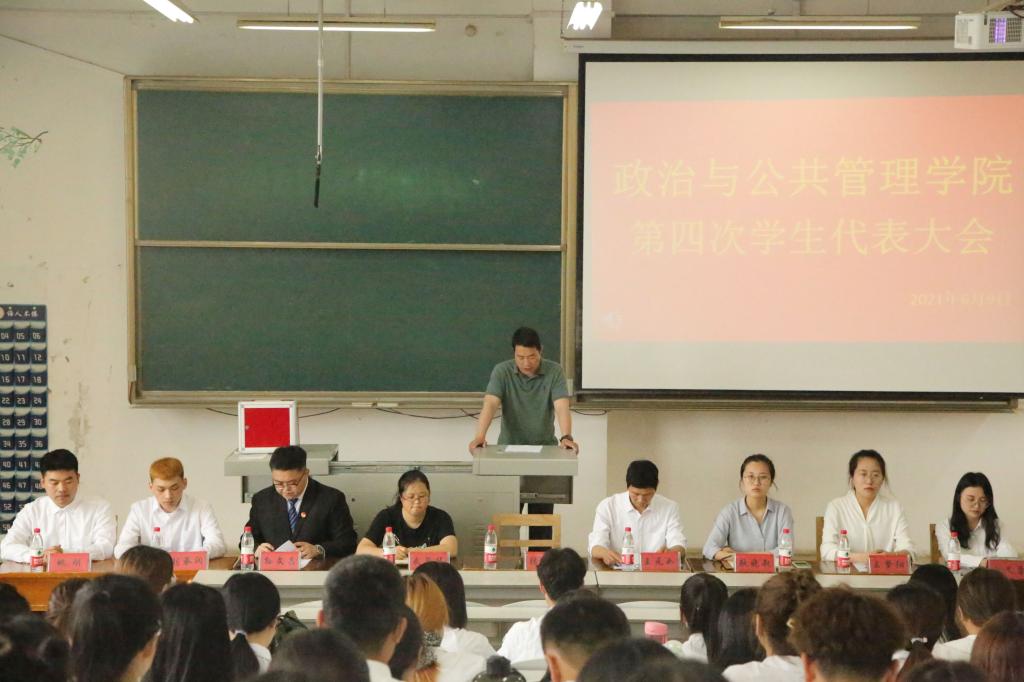 第十七届团委学生会工作进行总结阐述,他希望学生干部牢记为同学服务宗旨,增强使命感、责任感,脚踏实地,不断进取,并于报告最后对政治学院美好未来表达诚挚祝愿。