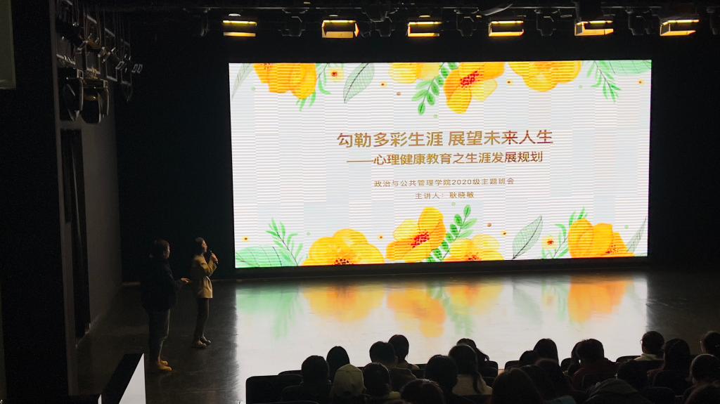 辅导员耿晓敏老师以勾勒多彩生涯展望未来人生为主题在小剧场召开了班会,从“就业”、“创业”、“考研”等多个就业方向选择向同学们做了未来职业规划的介绍,并针对学生的不同情况给出了合理建议,并指出要和压力做朋友,变压力为动力,号召同学们合理规划未来,注重压力缓解,营造健康的身心。