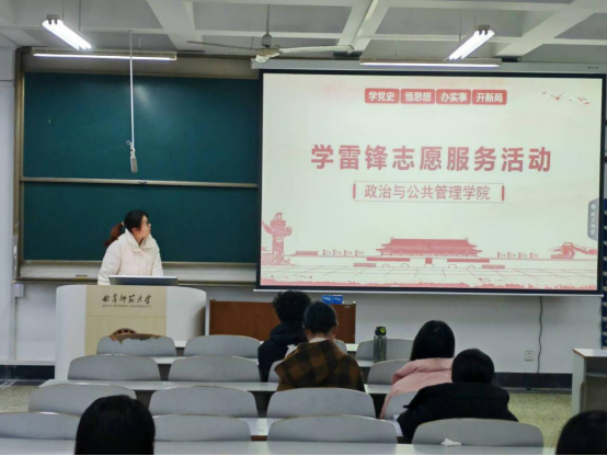 分别于JA302、JB103开展“弘扬雷锋精神,争做时代新人”宣讲活动,全体2023级同学参与。