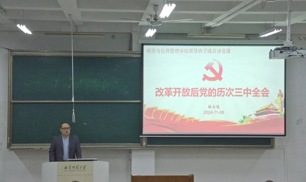 在党课学习中,林士俊副院长首先援引2024年美国大选的实例,引发同学们对于国家发展的思考。随后从什么是三中全会和改革开放后历次三中全会时间及主要内容两个方面对党的理论内容进行详细的阐述。着重强调了党的二十届三中全会进一步全面深化改革和推进中国式现代化的目标,进而推进强国建设和民族复兴伟业。最后,林士俊副院长鼓励同学们课后继续学习中国共产党的相关理论知识,端正入党动机,更加坚定入党的信心和决心。