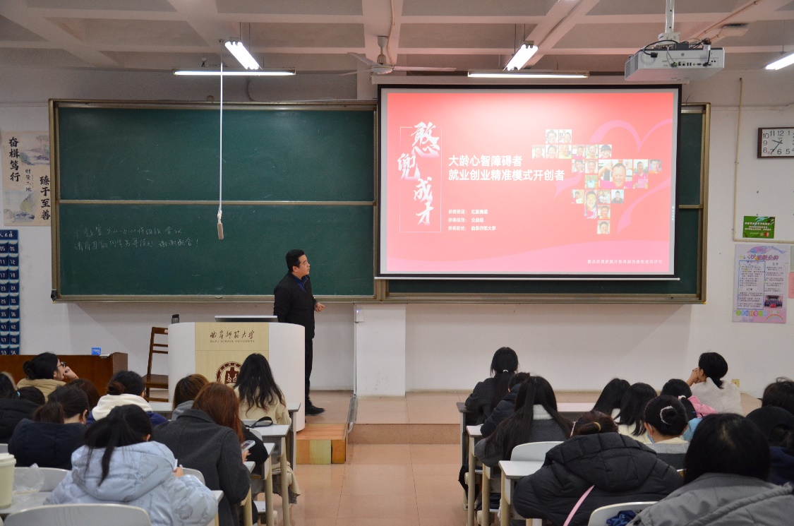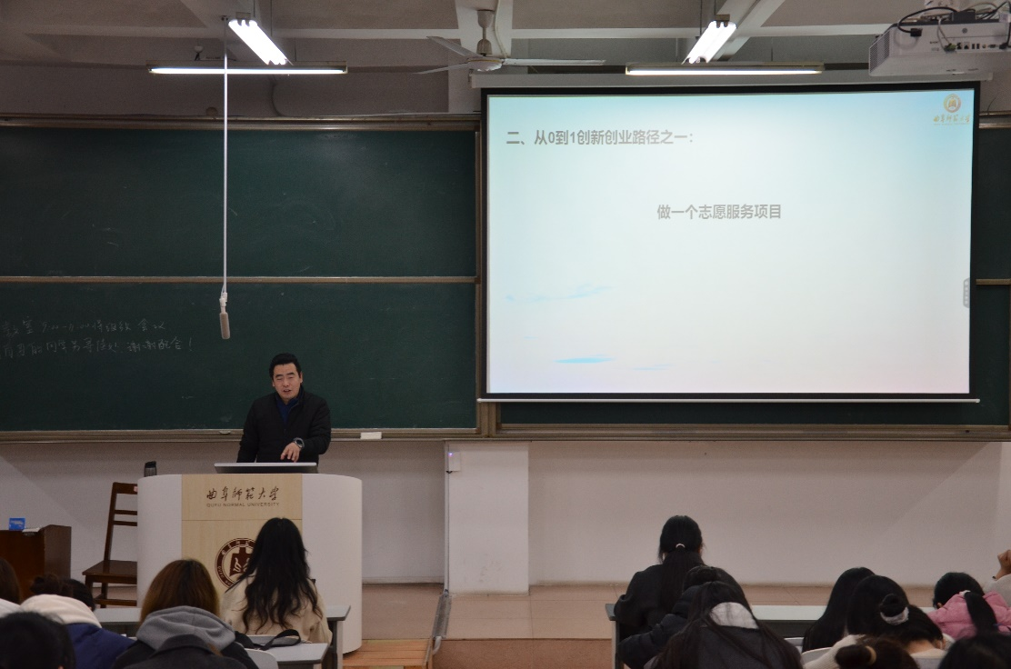 培训会上,马腾针对创新创业项目与志愿服务的结合,向大家介绍志愿服务不仅仅是简单的公益活动,更是一个能够挖掘创新点、实现创业梦想的平台。他首先针对于如何开展“高效、高质”的志愿服务工作作出了详细讲解,他强调同学们应当要从项目策划、组织实施、资源整合等多个方面进行综合考虑。此外他以大学生可通过开展关爱特殊群体的服务项目为例,阐述开展志愿服务的社会意义,号召同学们可通过志愿服务工作积极承担起社会责任。最后,马腾鼓励同学们从身边的问题和需求出发,运用专业知识,探索出具有创新性和可持续性的志愿服务项目,实现个人成长与社会价值的双赢。