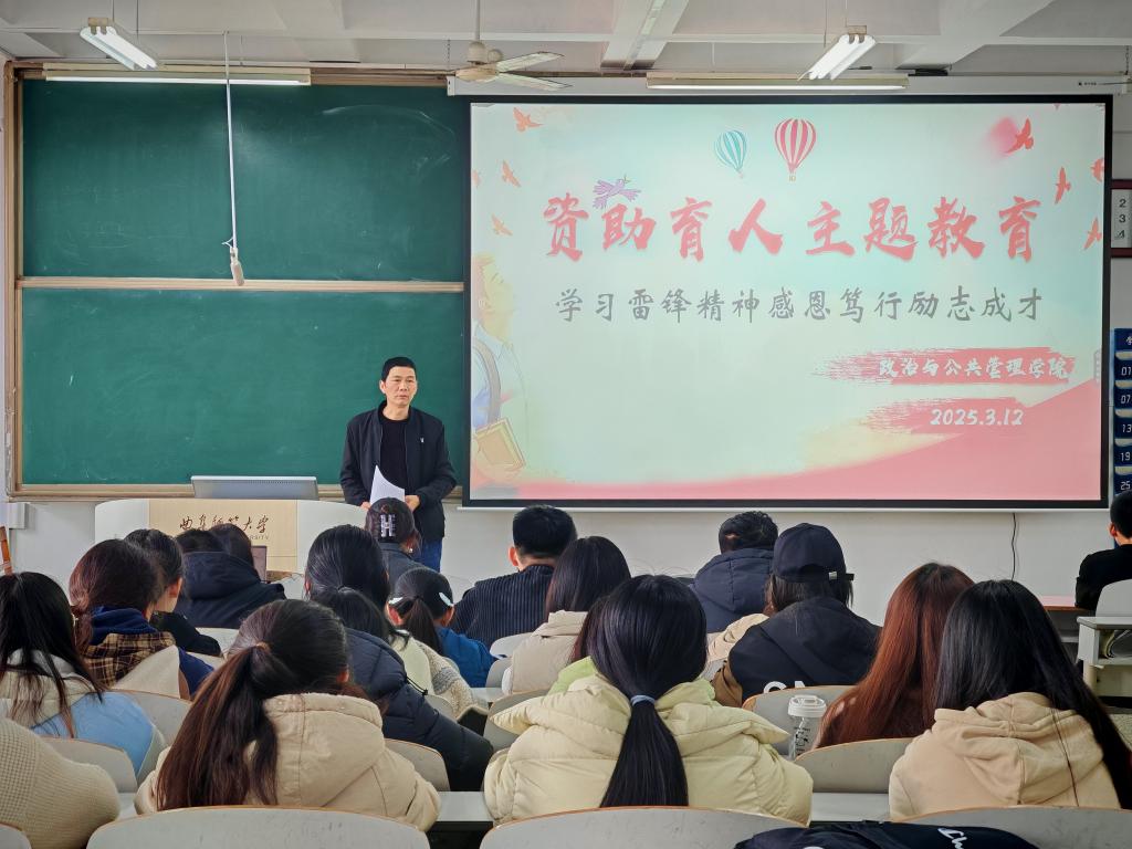 于3月5日和12日分两场举办了风华政茂"学雷锋"主题活动:资助育人专题宣讲会。学院资深辅导员王元如以"雷锋精神与成长成才"为主线,为2022-2024级本科生呈现了一堂浸润式思政课。
