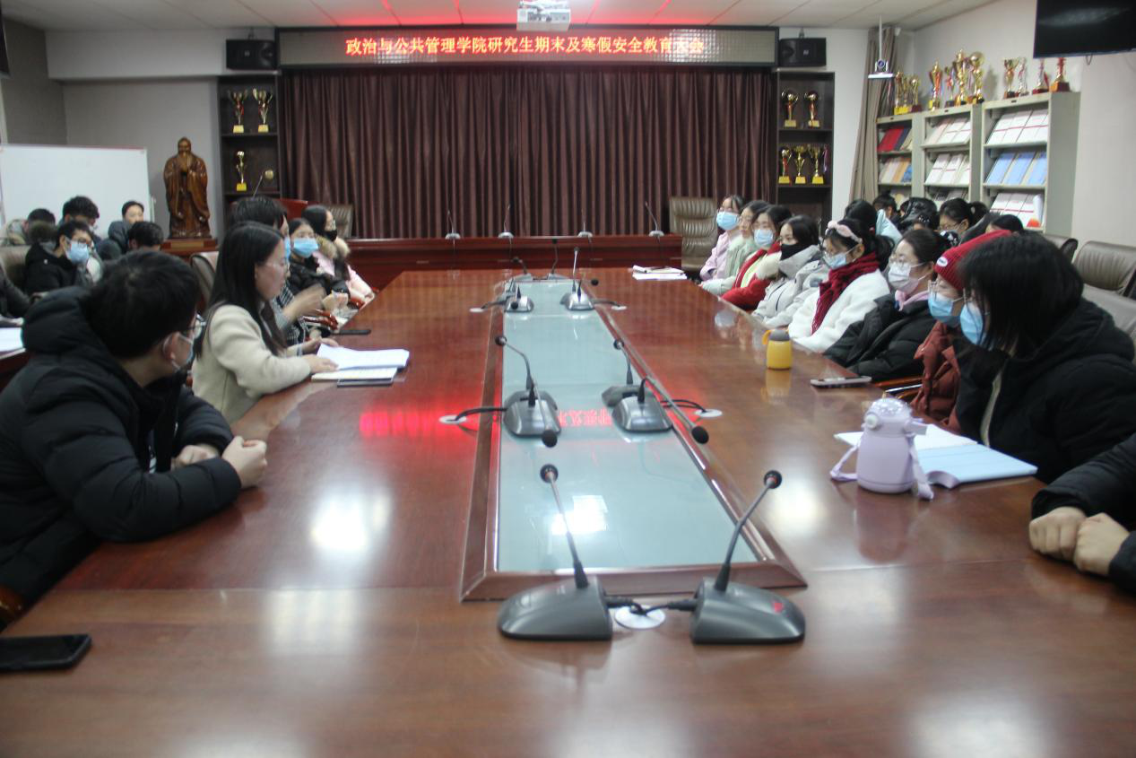 研究生期末及寒假安全教育大会在JC909顺利召开。本次会议研究生辅导员徐莉、研究生教学秘书封顺帆以及全体学术型研究生参加,会议由徐莉主持。
