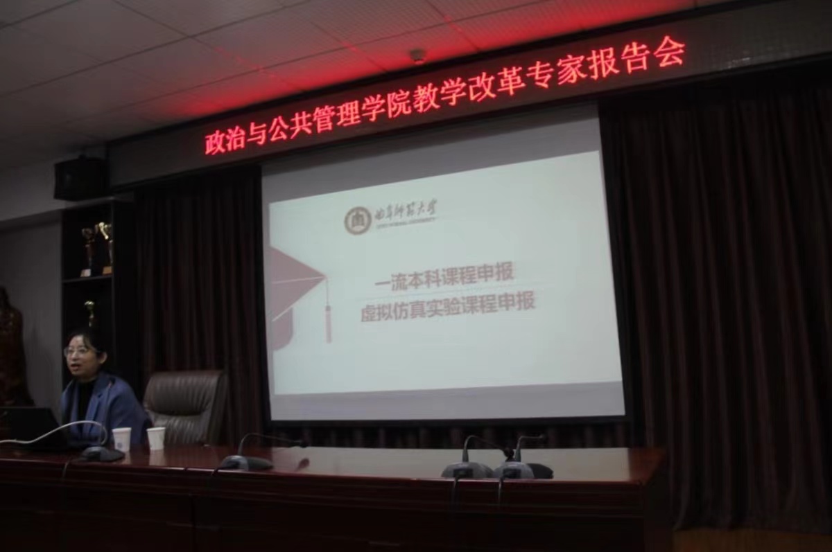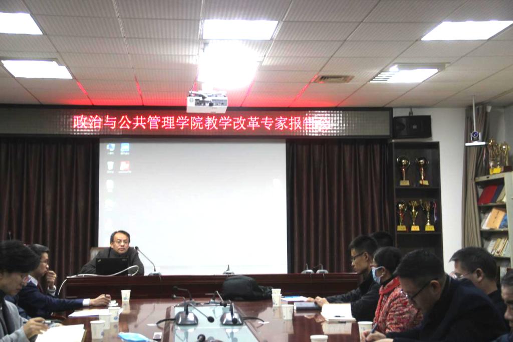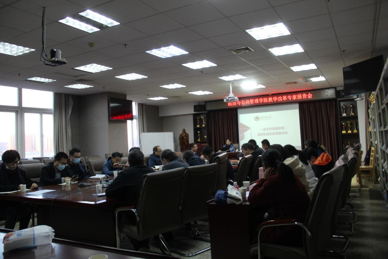 的课程改革创新以及一流课程建设工作,11月10日下午,学院邀请法学院王文娟老师和张强老师做了一流课程建设专题报告。学院全体专兼职教师参加了报告会。会议由副院长林士俊主持。