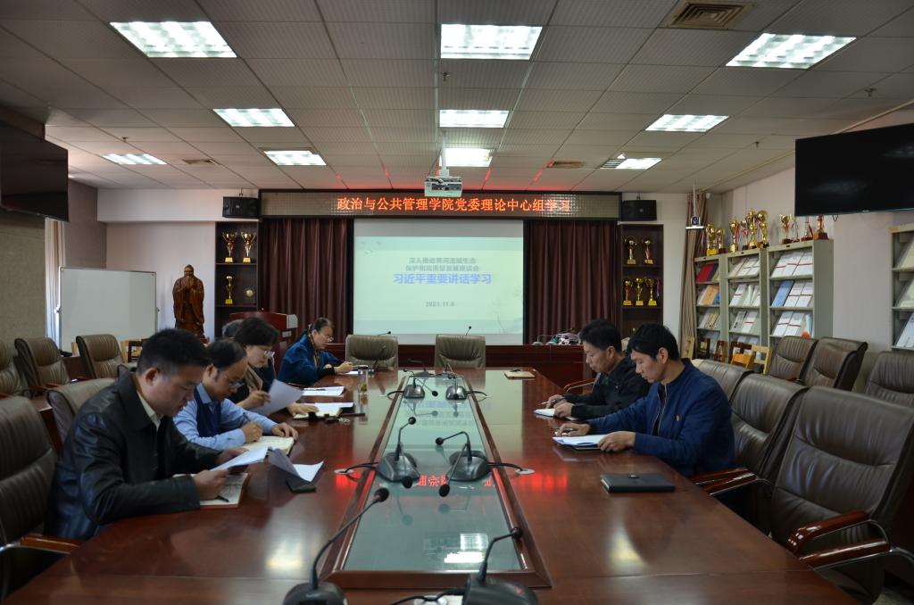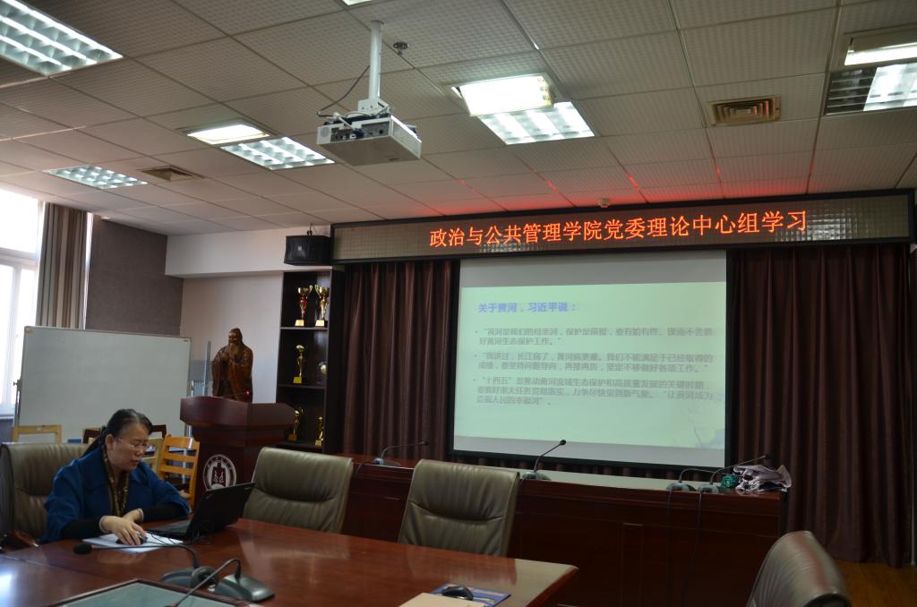 中心组集体学习了习近平总书记在山东省济南市主持召开深入推动黄河流域生态保护和高质量发展座谈会上的重要讲话。卢瑞霞指出要坚持以习近平新时代中国特色社会主义思想为指导,全面、深入、细致学习习近平生态文明思想,用新发展理念指导学院科研和教学工作深入开展。