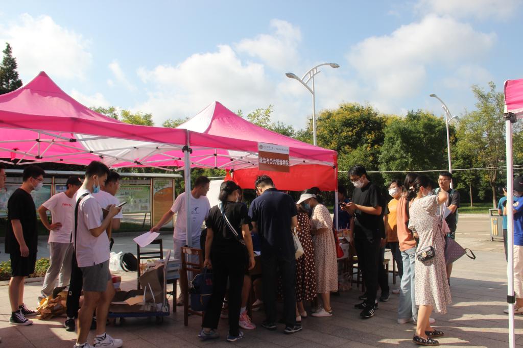 2019级、2020级研究生以良好的精神面貌,细心热情地为2021级研究生新生提供接待指引、资格审查、资料收发、宿舍安排等全方位的服务,为新生解答疑惑,帮助新生搬运行李、减轻负担,并落实学校疫情防控相关要求,新生报到现场井然有序。