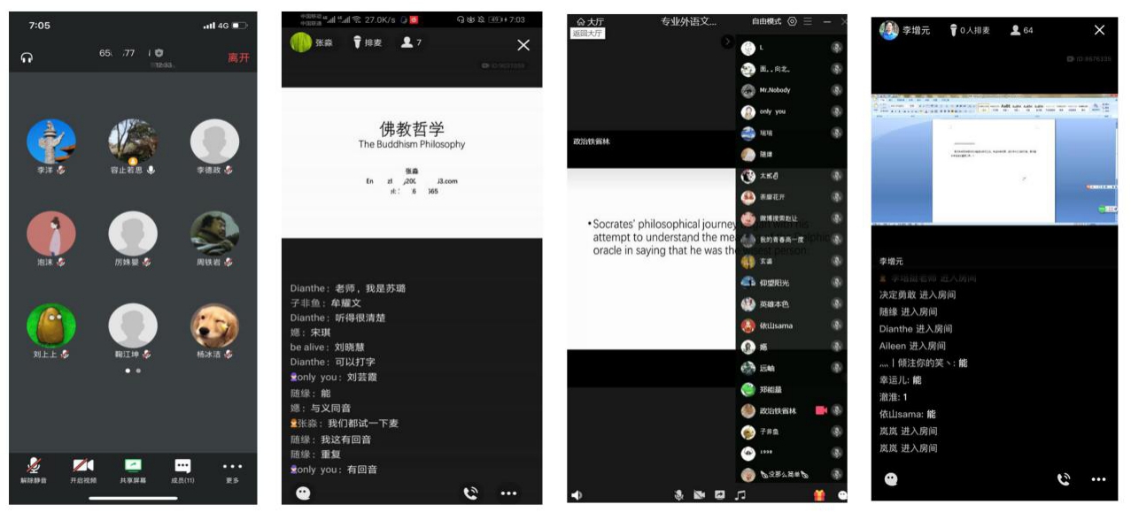 教师按照正常的教学计划分别为不同专业研究生开展了《马克思主义哲学经典著作研究》、《西方伦理思想史》、《中国哲学经典著作选读》、《专业外语文献精读》、《儒学哲学研究》等课程的线上教学,通过课前预习、课程教学过程中课件的实时分享以及课堂讨论交流等方式,使线上教学高效且生动。老师和同学们纷纷表示网络教学的实际情况是理想的,保证了教学活动的正常进行。在课堂中,老师们的努力付出和精彩讲解也深深感染着屏幕前每一位同学,同学们也秉持着认真的学习态度,遵守网络课堂秩序,师生之间积极互动,展现出赌场