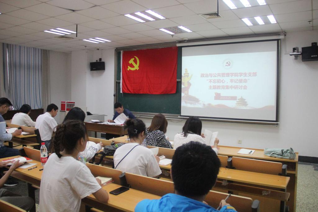学生党支部 “不忘初心、牢记使命”主题教育集中研讨会于JC614顺利召开。政治与公共管理学院学生党支部19名党员及1名预备党员参加了本次会议。